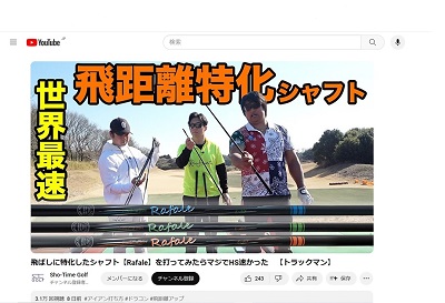 登録者数17万人の大人気YouTubeチャンネル「Sho-Time Golf(ショータイムゴルフ)」様で、「ラファールシリーズ(RS1.0、Ma1.0、KT1.0)」のシャフトが紹介されています。